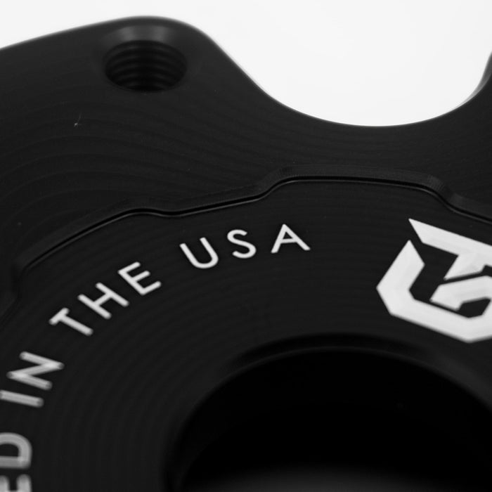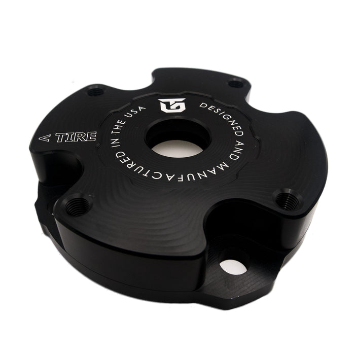 The plate is precisely machined in house from a solid piece of aircraft grade aluminum, it will provide extra support to your top plate, minimizing the chances of breaking when the shock bottoms out. It will also provide approximately 2” (depending on trim) of lift which helps fit bigger tires and adds extra clearance for your off road adventures